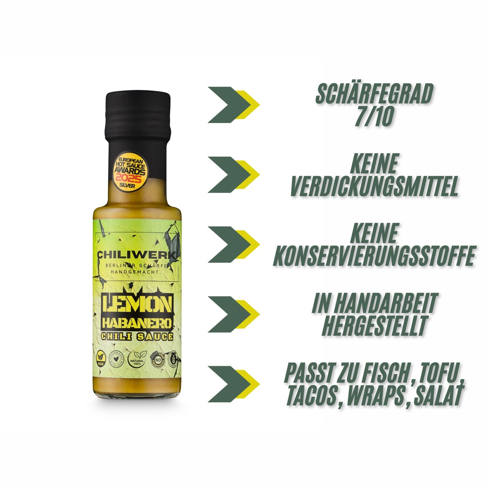 Unsere einzigartige Zutatenkombination bietet nicht nur ein aufregendes Geschmackserlebnis, sondern unterstützt auch aktiv Ihre Gesundheit: Lemon Habanero liefern wertvolles Capsaicin, das den Stoffwechsel ankurbelt und die Durchblutung fördert, während Fleur de Sel und eine Prise Zucker natürliche Mineralien und Energie beisteuern. Apfelessig und Wasser unterstützen die Verdauung und helfen bei der Entgiftung, während Zitronenpfeffer und Zitronenabrieb mit ihrem hohen Vitamin-C-Gehalt das Immunsystem stärken und die Haut schützen. Diese harmonische Mischung vereint Schärfe, Frische und Süße zu einem belebenden Erlebnis, das sowohl den Gaumen verwöhnt als auch das allgemeine Wohlbefinden fördert.